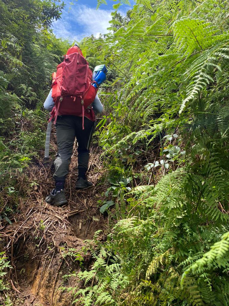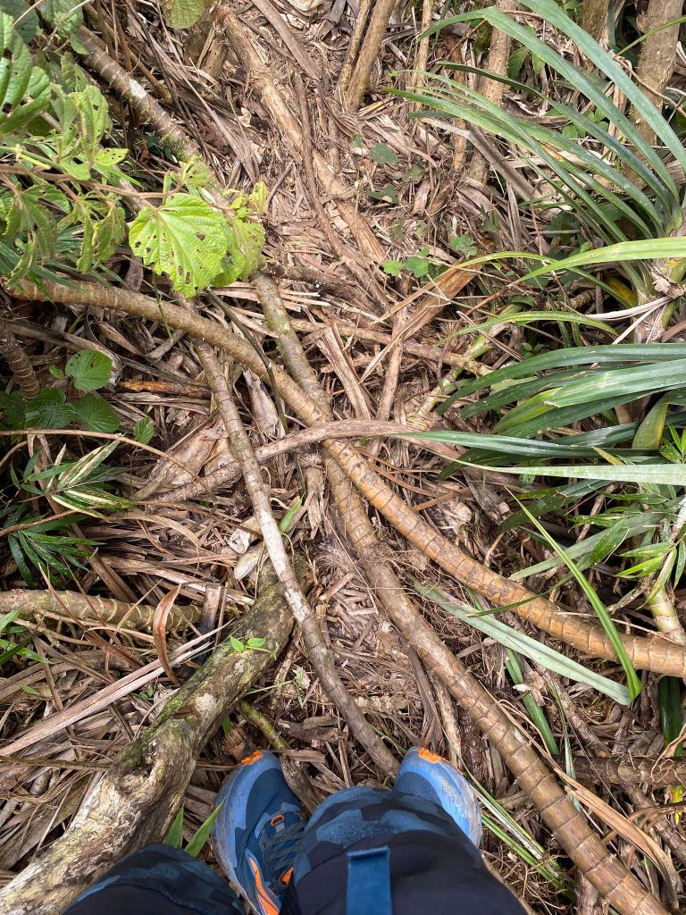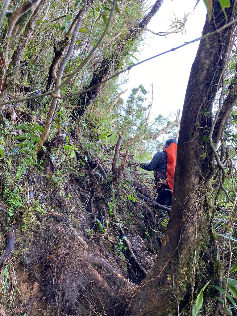 It’s hard to manage the pandan trail because of the dead pandans, and the stakes. One wrong move, and you could get impaled! Halfway through the trail was pure assault, and the 90 degree drop where you could choose two things: either use the rattan stem for support, or hoist yourself. I chose the latter. Oh, by the way, your foothold was only a branch which was slippery. A slip could fall you into a cliff!