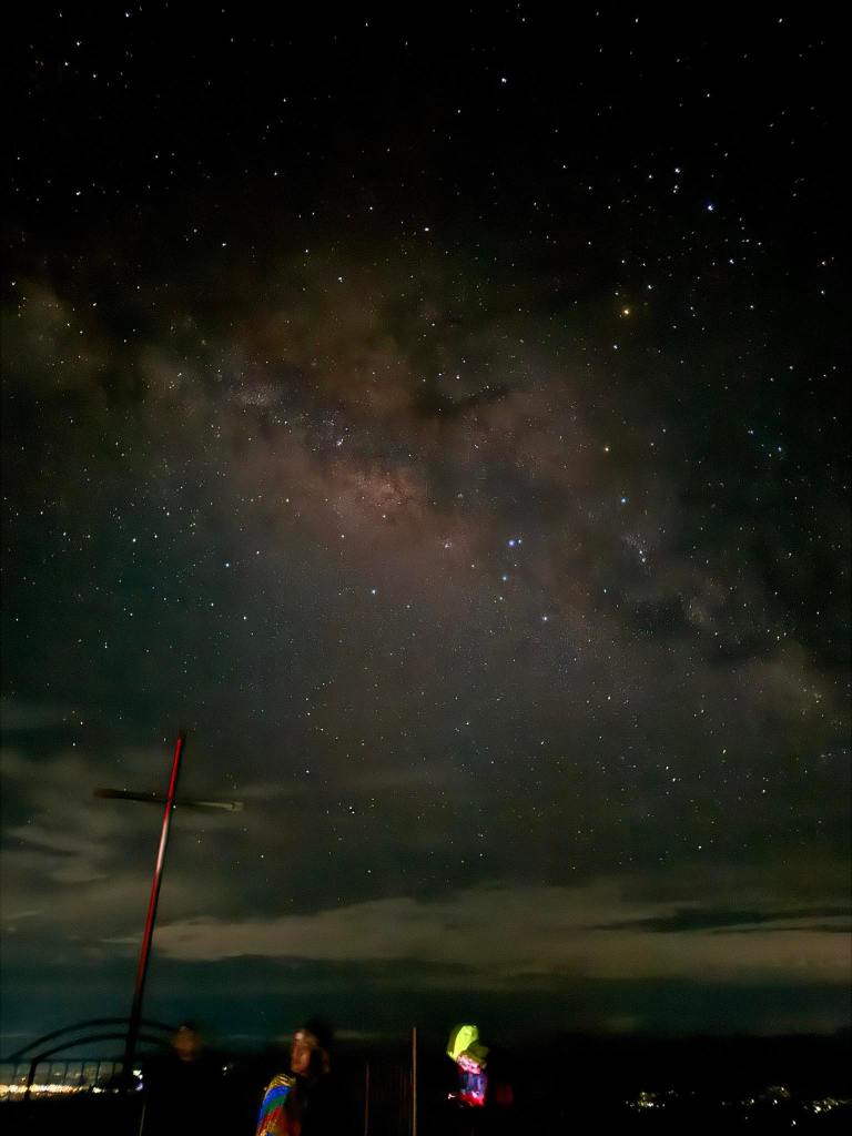 As the night went on, the stars started to appear. Luckily, we did not have a cloudy night; rather an array of stars came. The joiners took pictures beneath the metal cross.
