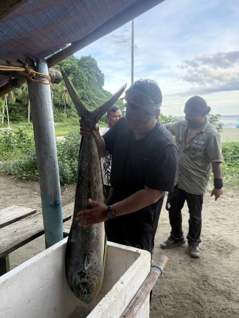 The group discussed the options, taking into account the tiredness, and soreness of the others. Later on, the group decided that we camped in Diotorin; we would start early going to Dibayabay, but before we went to the campsite, we dropped off to a store where Mang Boyet ordered a durado fish so that everyone could ate.
